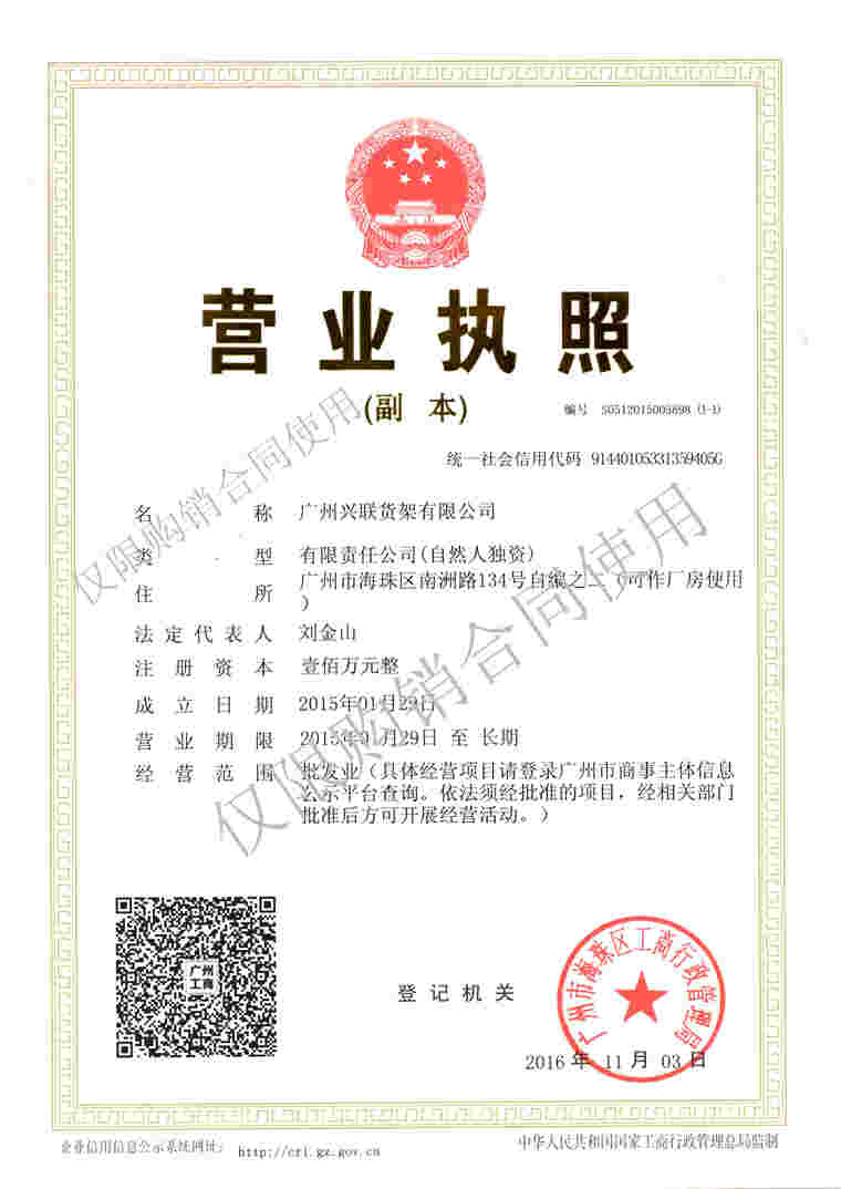 广州兴联货架有限公司自创建以来本着“用户至上,诚信经营”的经营理念,凭雄厚的实力,重信用,以多种经营特色和薄利多销的原则,经过全体员工的不懈努力,赢得了广大客户的信任。现已成为珠三角规模最大、品种最全、品质最优、价格最优惠的仓储货架公司之一。