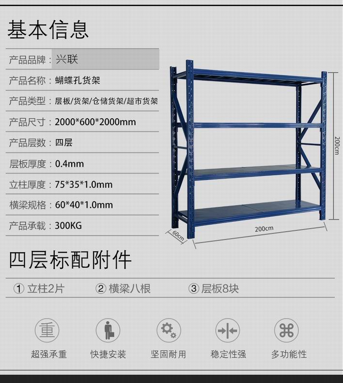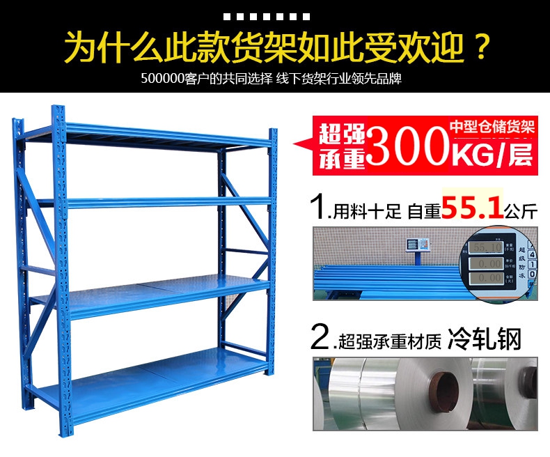 【货架名称】:层载300公斤仓储货架