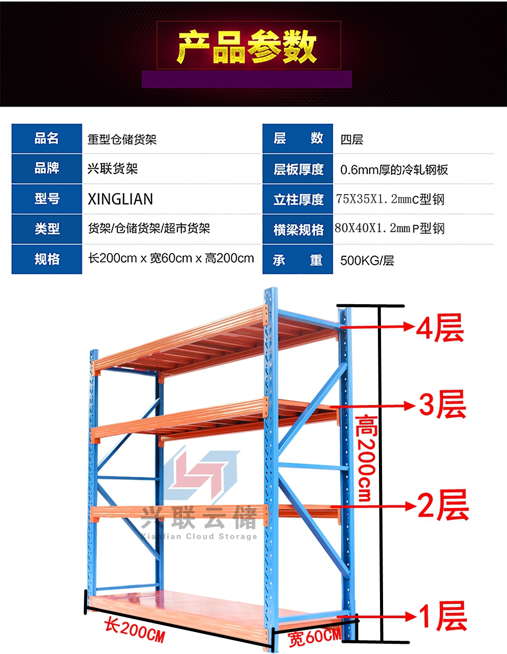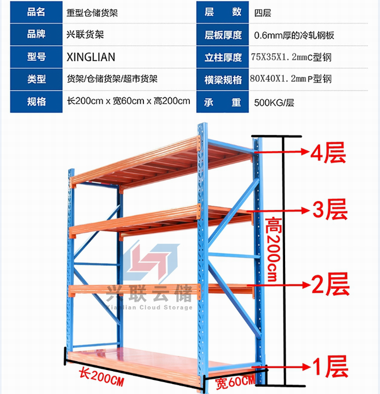 【货架名称】:层载500公斤仓储货架
