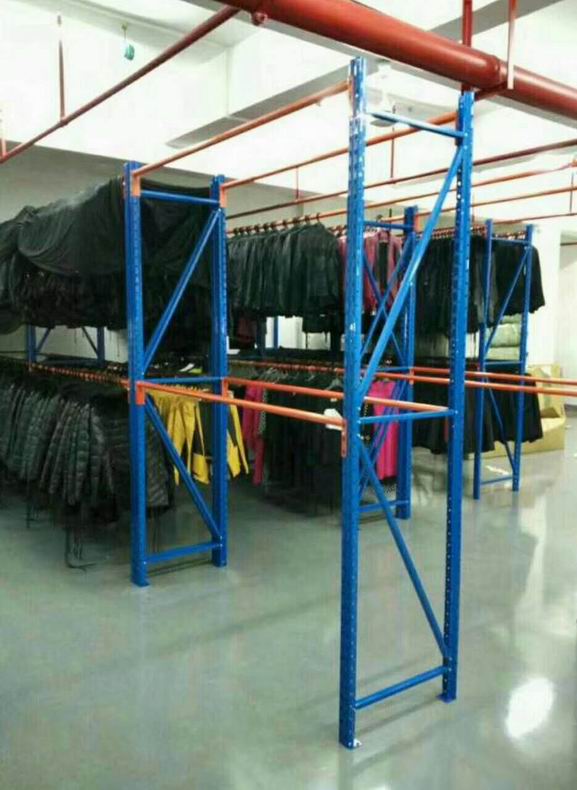 用途:主要用于服装行业和干洗洗涤行业,不能折叠的衣物需要挂起来,就需用到圆管型的仓储货架;
